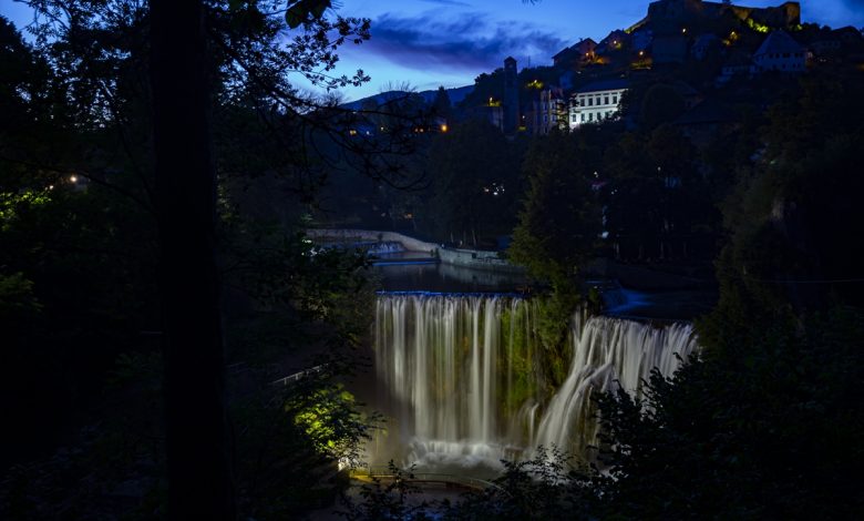 Osvijetljeni vodopad u Jajcu očarava posjetioce