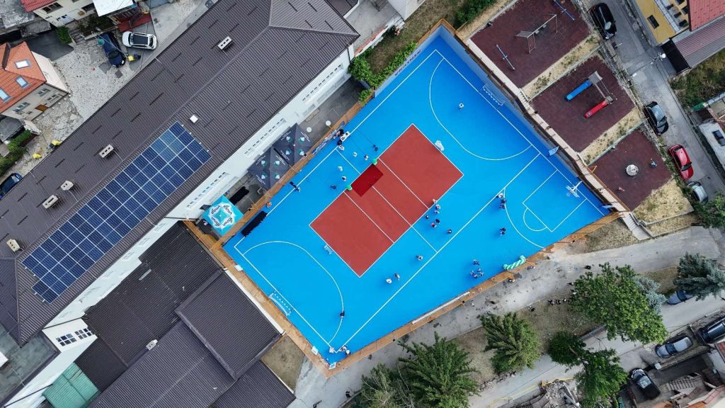 Igralište je u potpunosti sanirano, a posebna pažnja posvećena je postavljanju nove multifunkcionalne sportske podloge, koja je prilagođena za košarku, fudbal, odbojku i druge sportove. Ovo je prvo igralište na području Starog Grada sa ovakvom vrstom savremene podloge, čime se stvaraju kvalitetniji i sigurniji uslovi za boravak djece na otvorenom.
