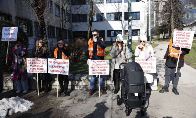 Grupa pacijenata oštećenih zatvaranjem Poliklinike Northwestern Medical Center u Sarajevu okupila se danas ispred Federalnog ministarstva zdravstva u glavnom gradu BiH kako bi tražili od odgovornih hitan stručni nadzor nad svojim zamrznutim genetskim materijalom koji je 3,5 mjeseca bez zvaničnog nadzora.