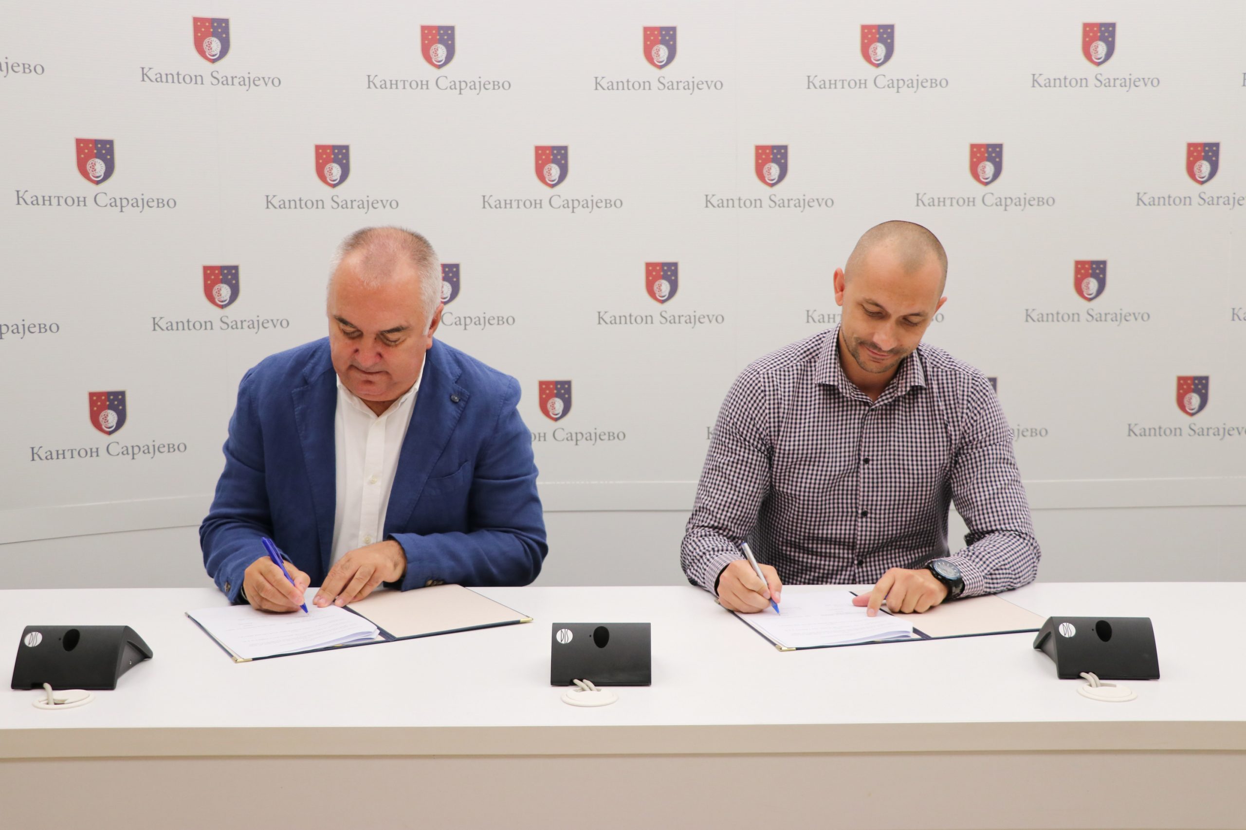 Ministar komunalne privrede, infrastrukture, prostornog uređenja, građenja i zaštite okoliša Kantona Sarajevo Almir Bečarević i direktor KJKP “Vodovod i kanalizacija” Rusmir Salić potpisali su danas Sporazum o realizaciji projekata izgradnje, rekonstrukcije i sanacije vodovodne i kanalizacione mreže na području Kantona Sarajevo.