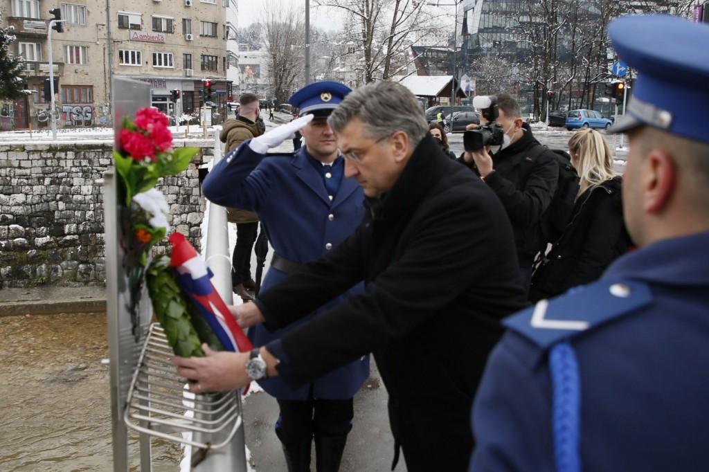 – Predsjednik Vlade Republike Hrvatske Andrej Plenković, koji danas boravi u službenoj posjeti BiH, u Sarajevu je položio vijenac na spomen-obilježje na mostu “Suade i Olge”.