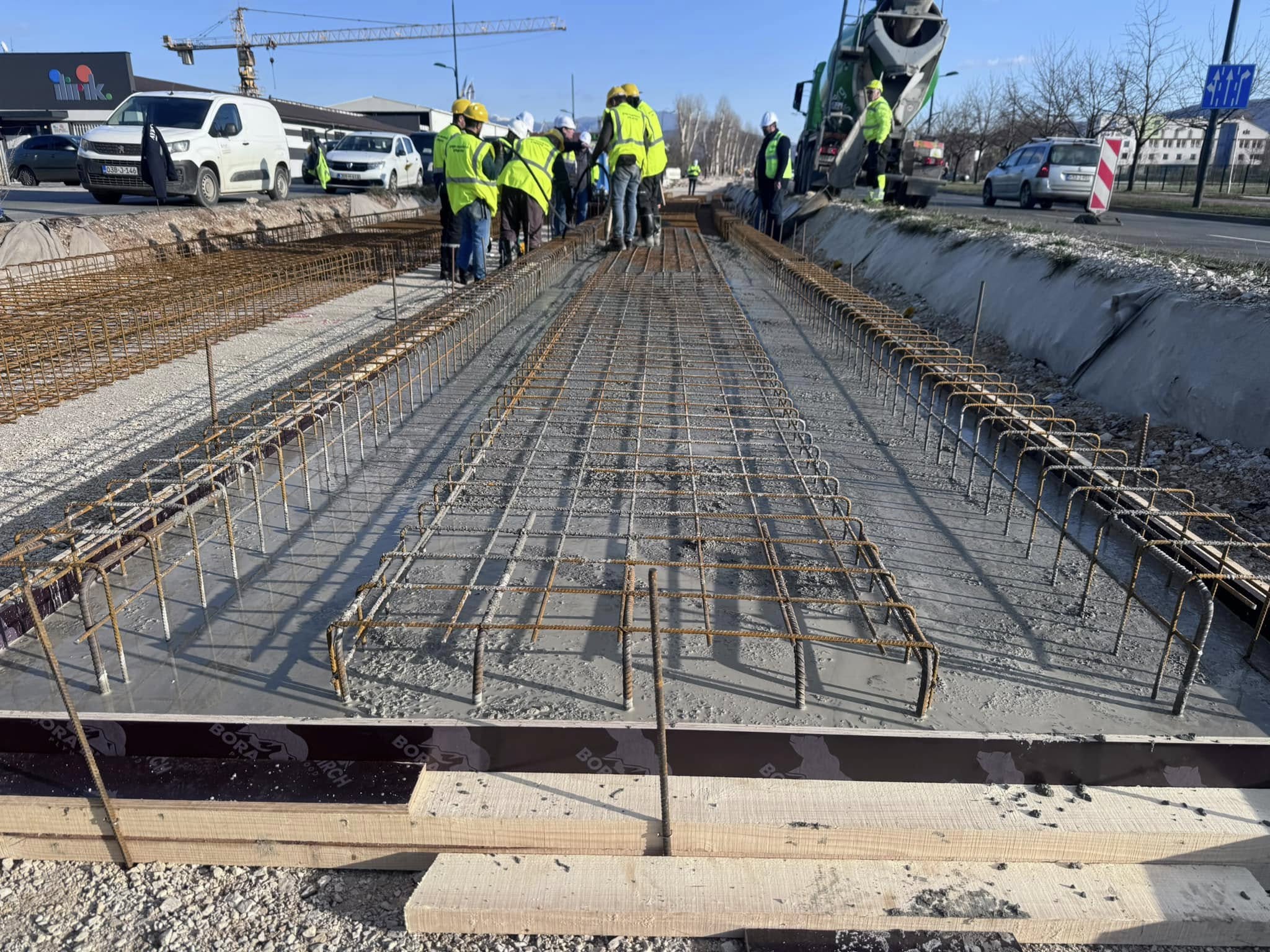 Betoniranje nove tramvajske pruge do Hrasnice je počelo. Jutros su počeli radovi na izgradnji armirano-betonske ploče, a u popodnevnim satima su postavljeni prvi metri betona na budućoj pruzi.