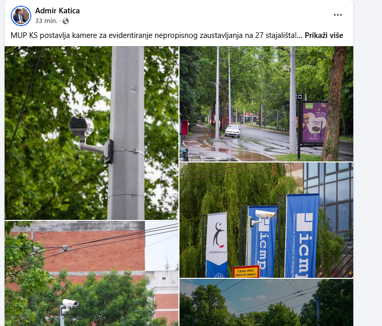 Kamere će biti postavljene na stajališta u Starom Gradu, Centru, Novom Sarajevu, Novom Gradu i Ilidži, objavio je na mrežama Admir Katica, ministar unutrašnjih poslova KS.