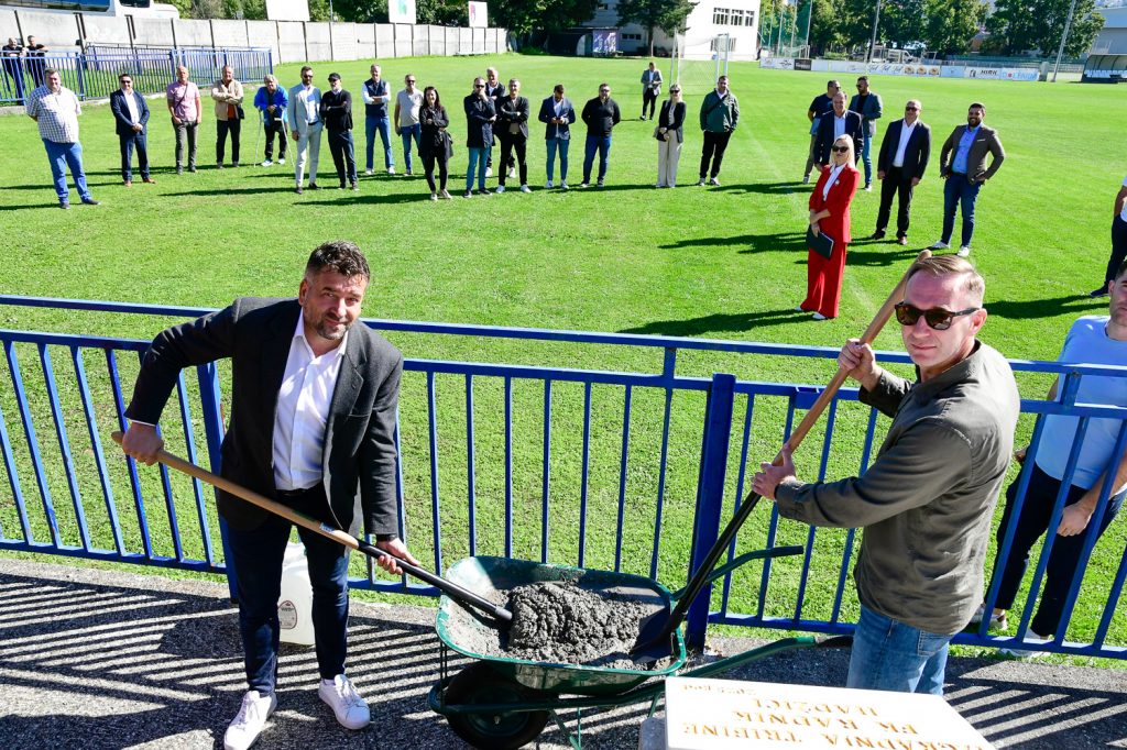 Kamen temeljac položili su predsjednik FK Radnik Aldin Ramić i načelnik Općine Hadžići Eldar Čomor.