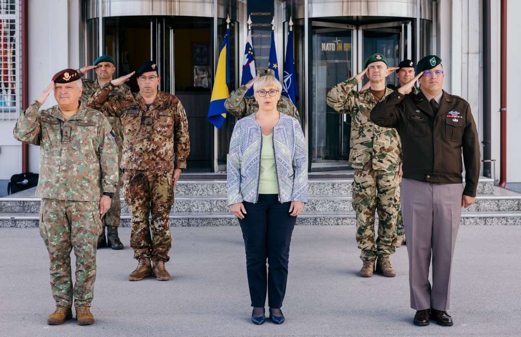 Komandant EUFOR-a generalmajor Florin Marian Barbu i komandant NATO štaba Sarajevo brigadni general Matthew A. Valas danas su u bazi Butmir u Sarajevu ugostili predsjednicu Republike Slovenije Natašu Pirc Musar.