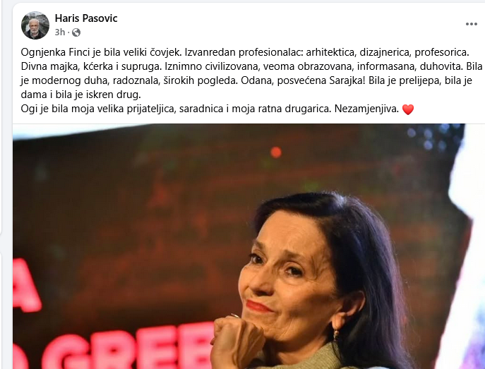 Na društvenim mrežama od profesorice se oprostio i reditelj Haris Pašović