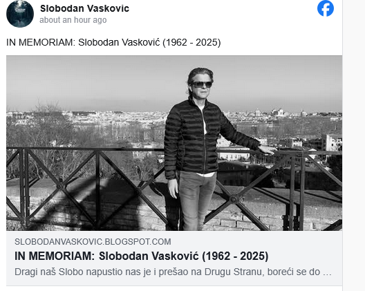 Slobodan Vasković preminuo je u Beogradu, a vijest o njegovoj smrti objavljena je na njegovom službenom nalogu.