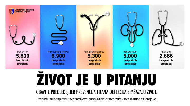Iz Ministarstva zdravstva KS poručuju da su preventivni pregledi ključni dio očuvanja zdravlja i dugoročne zdravstvene strategije, jer pomažu da se bolest zaustavi prije nego što postane ozbiljan problem. Pozivamo građane Kantona Sarajevo da se prijave, jer nisu to samo pregledi, život je u pitanju!