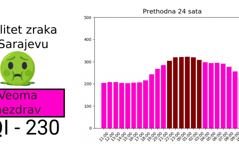 Usljed povećanog zagađenja zraka, kao i prognoziranih vremenskih prilika, Ministarstvo komunalne privrede, infrastrukture, prostornog uređenja, građenja i zaštite okoliša Kantona Sarajevo je, proglasilo epizodu “Upozorenje” za područje općina Stari Grad, Centar, Novi Grad, Novo Sarajevo, Ilidža, te Vogošća i Ilijaš. Na području općine Hadžići na snazi ostaje epizoda “Pripravnost”.