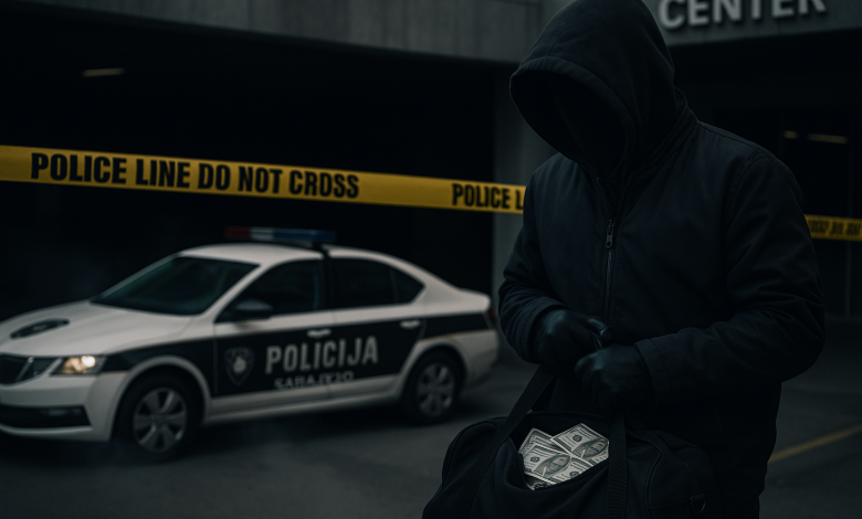 Sumnjiče se da su se 09. juna 2025. godine, oko 13 sati i 25 minuta, motorom stigli ispred ulaza u garažu tržnog centra Bingo u ulici Butmirska 14. Osumnjičeni Bošnjak ušao je pješke u garažu, stavio rukavice na ruke i prišao automobilu u kojem se nalazila direktorica jedne sarajevske firme. Zaprijetio joj je pištoljem i rekao: „Daj pare“. Na zadnjem sjedištu automobila nalazila se torba u kojoj je bilo 113.103,40 KM, koju je osumnjičeni uzeo, a zatim pobjegao zajedno sa Mušovićem.