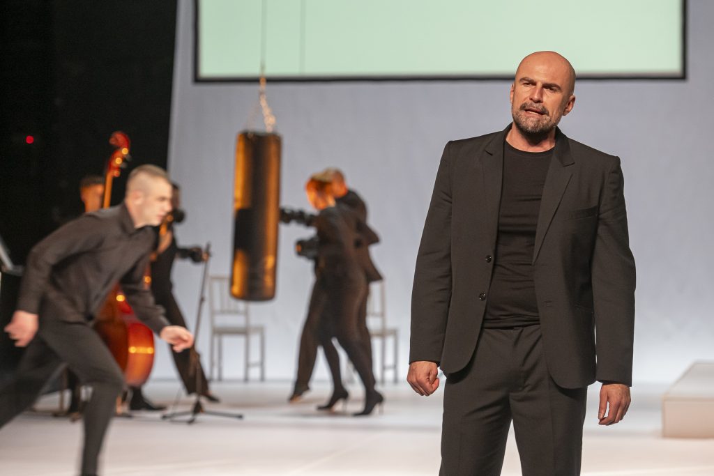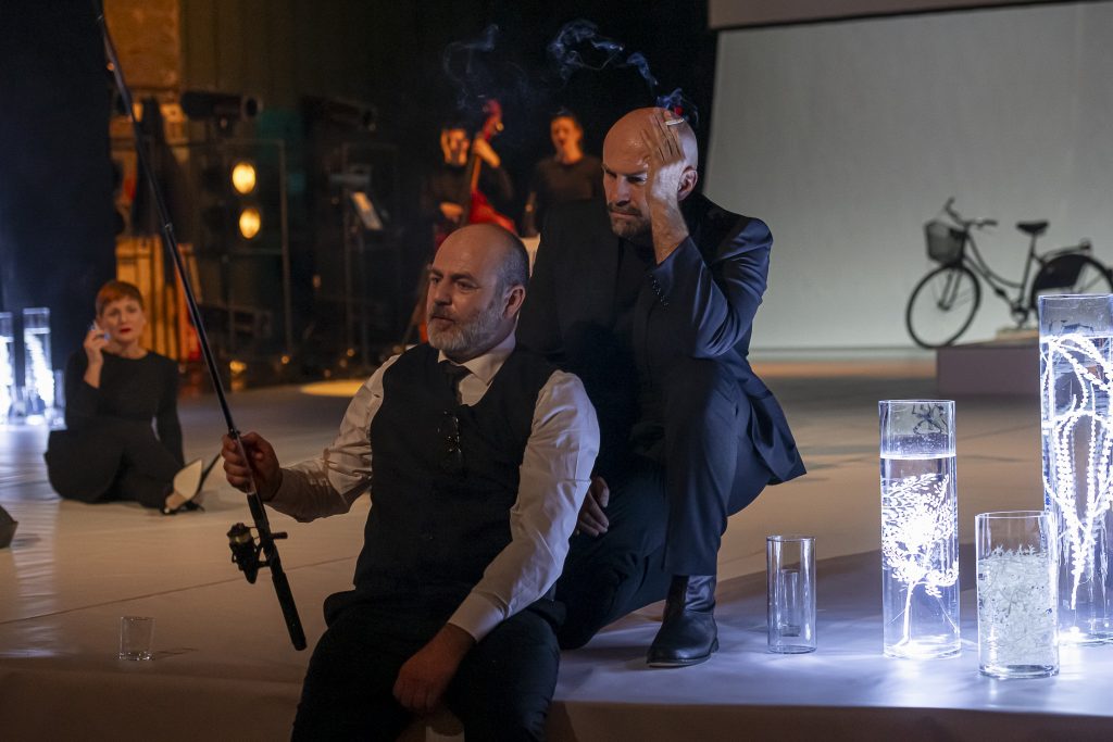 U predstavi igraju: Ermin Sijamija, Slaven Vidak, Vedrana Božinović, Sanela Krsmanović-Bistrivoda, Dino Bajrović i muzičar Rastko Zečević.