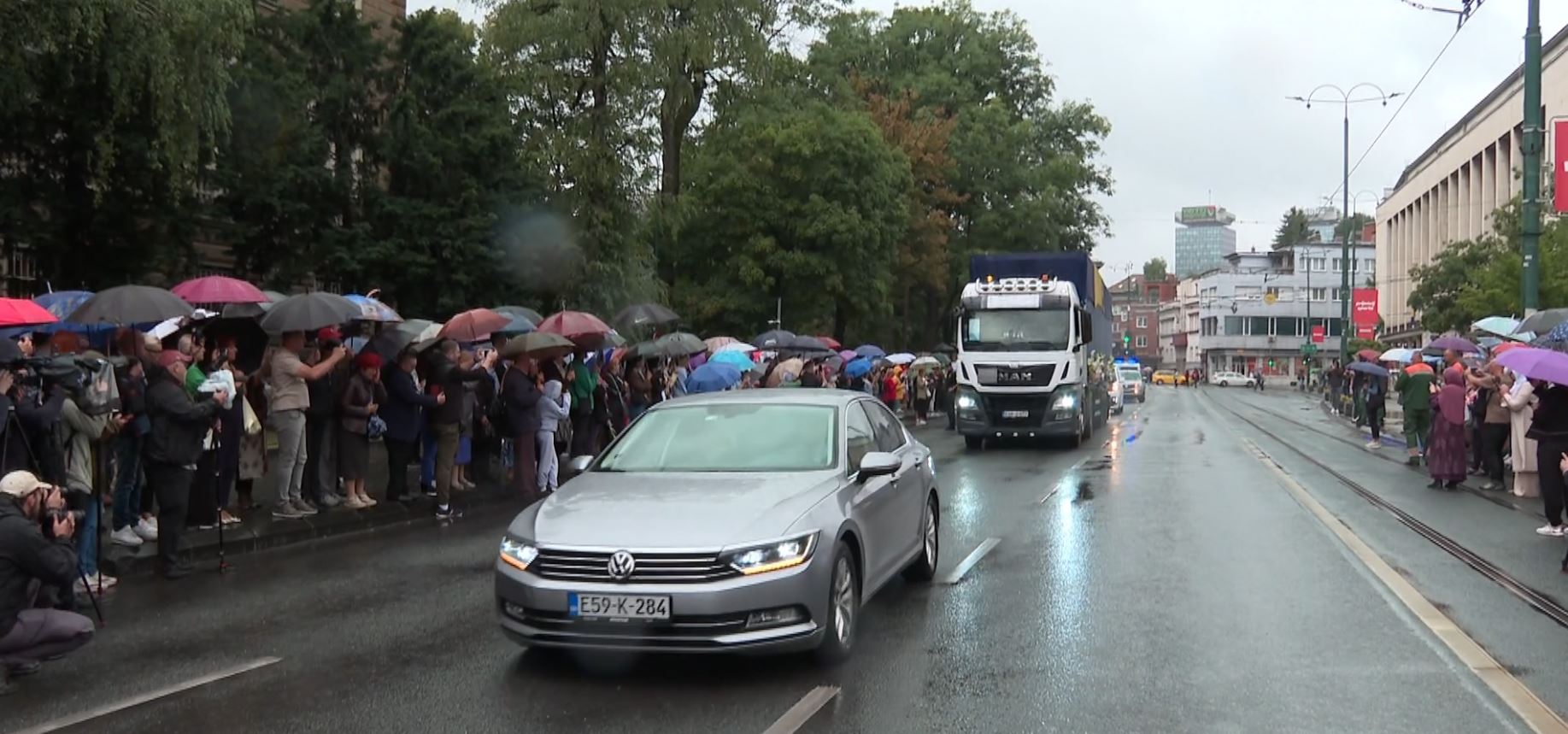 U tišini, uz dove, cvijeće i suze brojni građani Sarajeva ispratili su tabute s posmrtnim ostacima sedam žrtava genocida počinjenog u Srebrenici u julu 1995. godine, ispred zgrade Predsjedništva Bosne i Hercegovine u Sarajevu