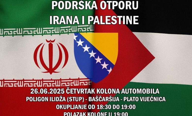 Neformalna grupa građana organizuje kolonu automobila u znak podrške otporu Irana i Palestine, koja će se održati u četvrtak, 26. juna 2025. godine u Sarajevu.