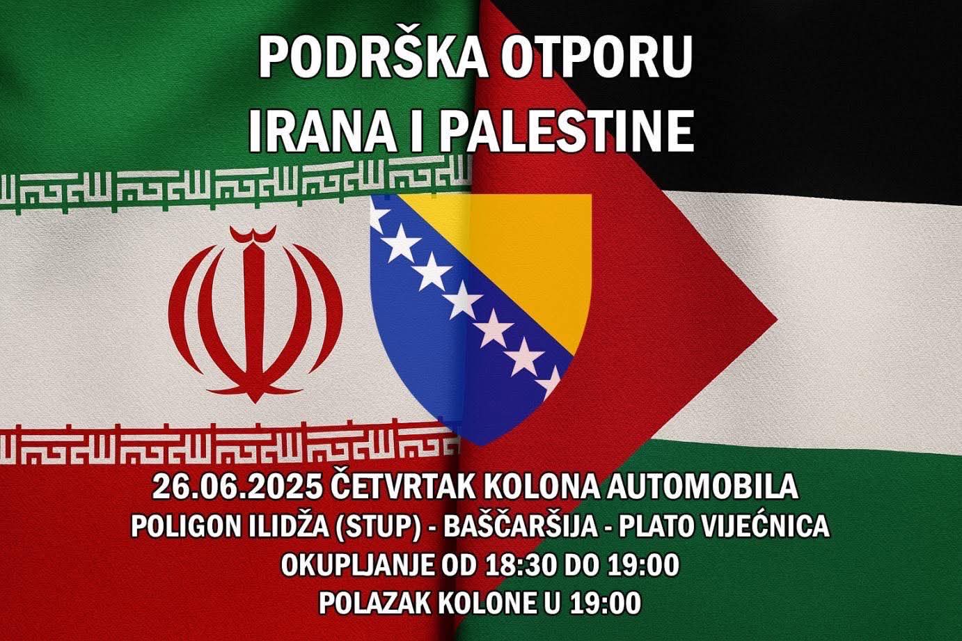 Neformalna grupa građana organizuje kolonu automobila u znak podrške otporu Irana i Palestine, koja će se održati u četvrtak, 26. juna 2025. godine u Sarajevu.