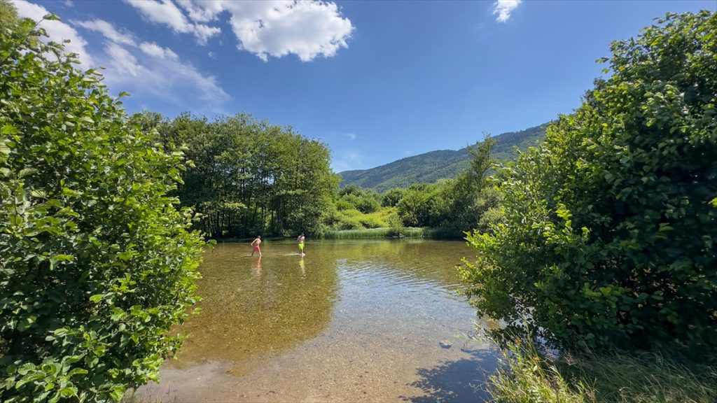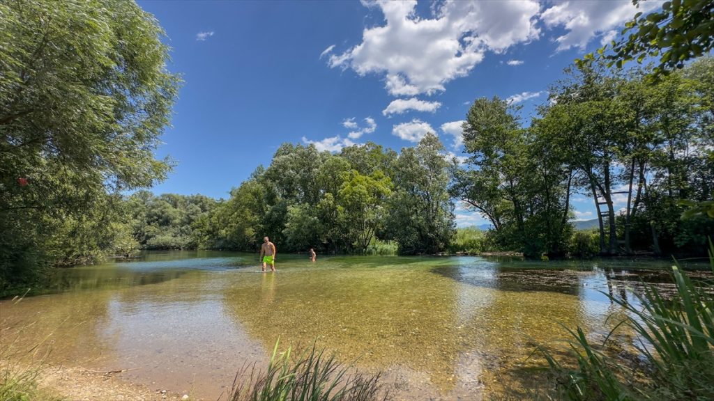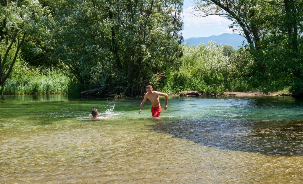 U kompleksu parka nalaze se brojne oaze zelenila uz vodu, a na jednom od takvih mjesta Sarajlije traže osvježenje u kristalno čistoj, ali poprilično hladnoj vodi, javlja Anadolu.