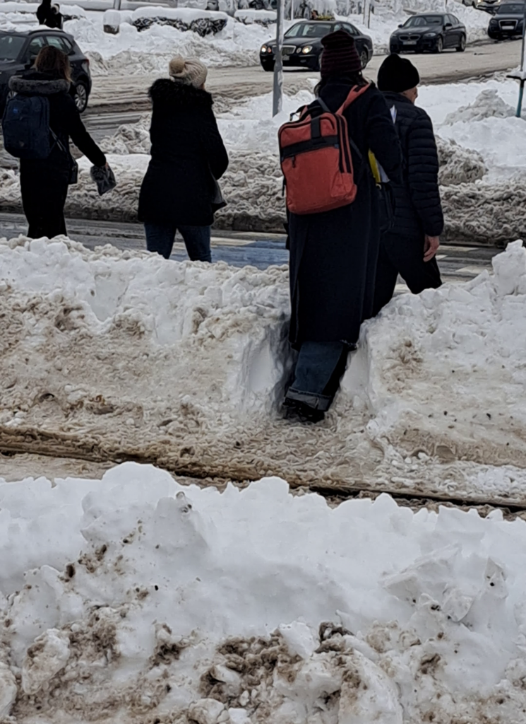 Glavna gradska saobraćajnica je očišćena, ali to nije slučaj sa prilaznim cestama, trotoarima i tramvajskim stajalištima. U javni prijevoz uključeni su autobusi, i jedan pogled na prepune autobuse i tramvaje govori o gužvama i neprilikama, koje je snijeg izazvao.