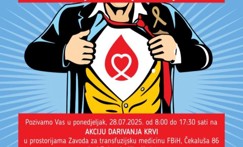 Iz Udruženja Srce za djecu oboljelu od raka pozvali su stoga građane da, kao što su to i dosad činili, podrže i akciju darivanja krv najavljenu za 28. juli od 8.00 do 17.30 sati u Zavod za transfuzijsku medicinu FBiH (Čekaluša 86)u Sarajevu i budu heroji za djecu koja se bore s tom teškom bolešću.