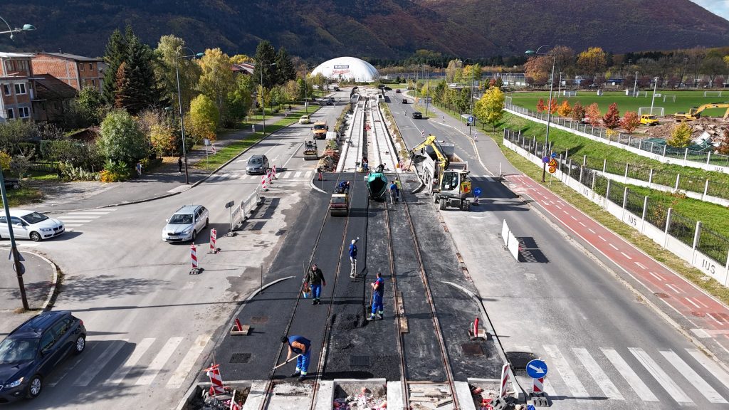 Jučer je započelo asfaltiranje osme raskrsnice, one kod Univerziteta. Izvode se radovi i na asfaltiranju dijela saobraćajnice u Hrasnici, gdje su završeni radovi na izmještanju fekalnog i atmosferskog kolektora, a radovi na izmještanju se nastavljaju na zadnjoj dionici ove saobraćajnice u dužini od 400 metara. Izvode se radovi i na postavljanju prvog i drugog sloja betonske ploče. Na okretnici Famos radno je na izgradnji tramvajskog stajališta i servisnog kanala. Započeli su radovi i na ugradnji kontaktne mreže ugradnjom prvih pričvrsnika za konzole.