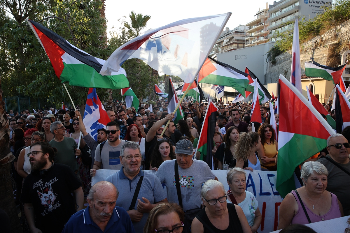 Među okupljenima su bili pomorski radnici, propalestinski aktivisti i građani, uglavnom iz ljevičarskih političkih stranaka i grupa, koji su nosili palestinske zastave i transparente kojima osuđuju tekući genocid Izraela u Gazi, kao i stav Atine prema njemu, koji su nazvali saučesništvom.
