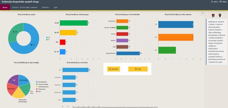 Baza podataka sadržavat će informacije o broju ovisnika koji su evidentirani kroz Zavod za bolesti ovisnosti Kantona Sarajevo i drugih institucija, broj krivičnih djela koja je evidentirao MUP Kantona Sarajevo, podatke o zapljenama, vrsti droga, spolu i starosnoj dobi ovisnika, broju edukacija/časova i drugih mjera koji se preventivno održavaju u školskim ustanovama i drugo.