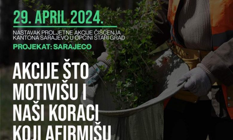 U okviru projekta “Sarajeco” kojeg implementira Ministarstvo komunalne privrede, infrastrukture, prostornog uređenja, građenja i zaštite okoliša Kantona Sarajevo, slijedi nastavak proljetne akcije čišćenja KS u svim mjesnim zajednicama Općine Stari Grad Sarajevo.