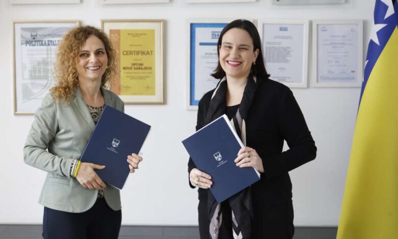 Načelnica Općine Novo Sarajevo Benjamina Karić i direktorica firme “Mibral” d.o.o. Sarajevo Maja Bralović Smith potpisale su Ugovor o izvođenju radova na vanjskom uređenju Parka ‘Trg Heroja’.