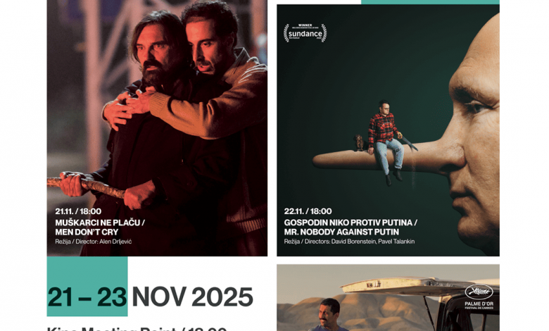Ovogodišnji specijalni program „Suočavanje s prošlošću“ Sarajevo Film Festivala donosi tri nagrađivana filma, koja će biti prikazana u kinu Meeting Point od 21. do 23. novembra: „Muškarci ne plaču“ Alena Drljevića, „Gospodin Niko protiv Putina“ Davida Borensteina i Pavela Talankina te „To je bila samo nezgoda“ Jafara Panahija. Sve projekcije počinju u 18 sati, a ulaz je besplatan. Besplatne ulaznice mogu se preuzeti sat vremena prije početka projekcije, saopćeno je iz Kina Meeting point.