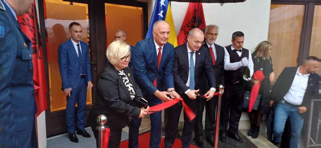 Ministar za evropske i vanjske poslove Republike Albanije Igli Hasani, zamjenik predsjedavajuće Vijeća ministara i ministar odbrane Bosne i Hercegovine Zukan Helez i otpravnica vanjskih poslova Republike Albanije Anita Shaqiri, svečano su otvorili Ambasadu Republike Albanije u BiH sa sjedištem u Sarajevu.
