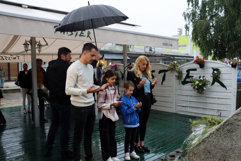 Porodice ubijenih, te predstavnici udruženja žrtava i vlasti danas su položile cvijeće i odale počast na mjestu masakra na Trgu solidarnosti kod broja 14, kod pijace na Alipašinom polju.