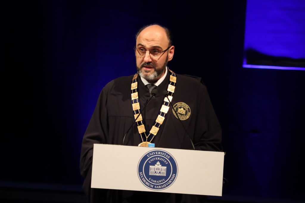 Ali ta sloboda ne dolazi bez obaveze. Ona podrazumijeva moralnu i društvenu odgovornost, jer nauka bez razumijevanje šire društvene odgovornosti može postati destruktivna sila. Nauka i naš odnos prema društvu moraju biti nerazdvojni, a znanje mora služiti čovjeku i nikada biti usmjereno protiv njega. Stoga se od vas očekuje da budete ne samo nosioci znanja, već kritička savjest zajednice kojoj pripadate – da se zalažete za vrijednosti humanizma, inkluzivno društvo, pravdu i istinu – čak i kada to podrazumijeva izlazak iz zone komfora akademske udobnosti zatvorenog kruga naučnog diskursa i neposrednosti istraživačkih rezultata”, rekao je rektor Zaimović.
