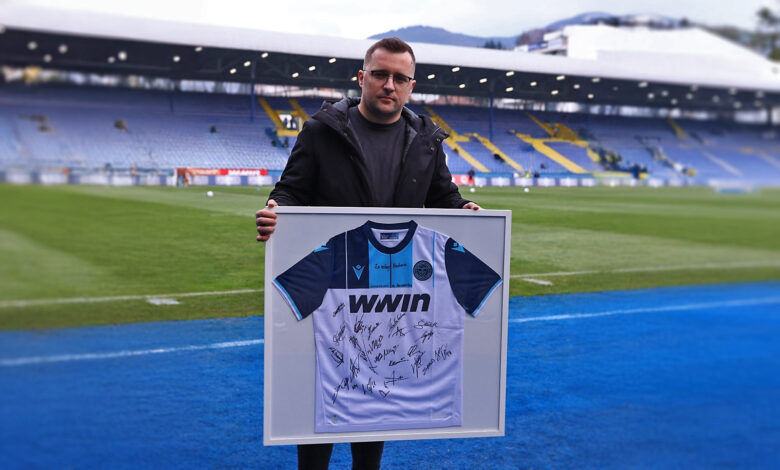 Uposlenik TVSA / FK Željezničar uručio priznanje Nedimu Selimbegoviću, oficijelnom spikeru sa Grbavice