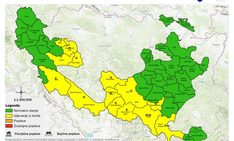 Prognoziran je porast vodostaja na većem dijelu vodnog područja rijeke Save u Federacije BiH, posebno na gornjim dijelovima slivova Une, Sane, Sanice, Vrbasa i Bosne.