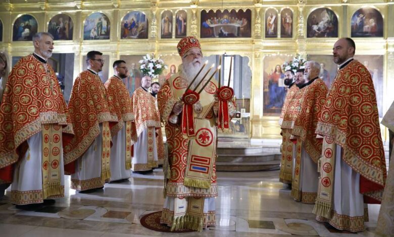 Mitropolit dabrobosanski Hrizostom jutros je u Sabornoj crkvi Rođenja Presvete Bogorodice u Sarajevu služio vaskršnju liturgiju, uz sasluženje sveštenika te mitropolije.