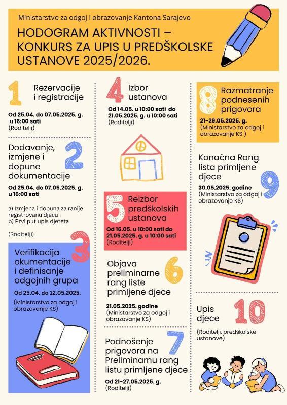 Ministarstvo za odgoj i obrazovanje Kantona Sarajevo obavještava javnost da sutra počinje proces upisa djece u javne i private predškolske ustanove za novu pedagošku godinu.