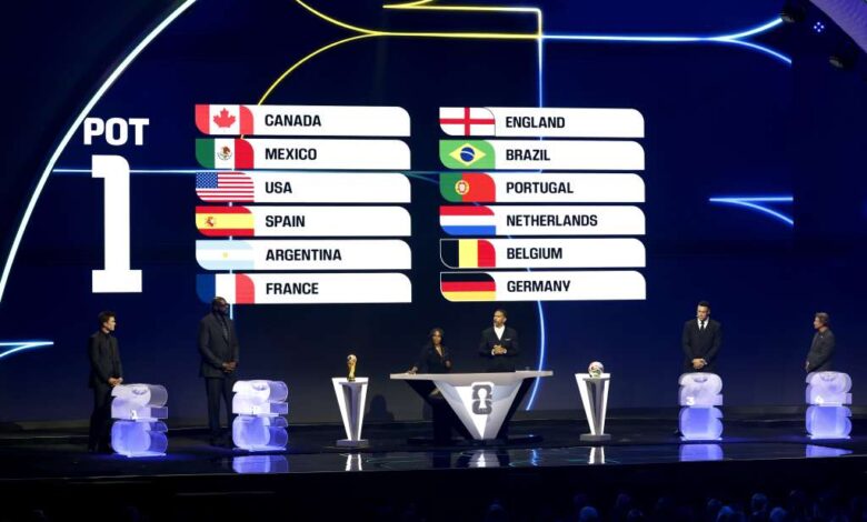 Ždrijeb je vodio legendarni engleski nogometaš Rio Ferdinand, a loptice s imenima reprezentacija izvlačili su predstavnici četiri najpopularnija sporta na sjevernoameričkom kontinentu – bivša zvijezda američkog footballa Tom Brady, bivši NBA košarkaš Shaquille O’Neal, bivši kanadski hokejaš Wayne Gretzky, te igrač bejzbola Aaron Judge.