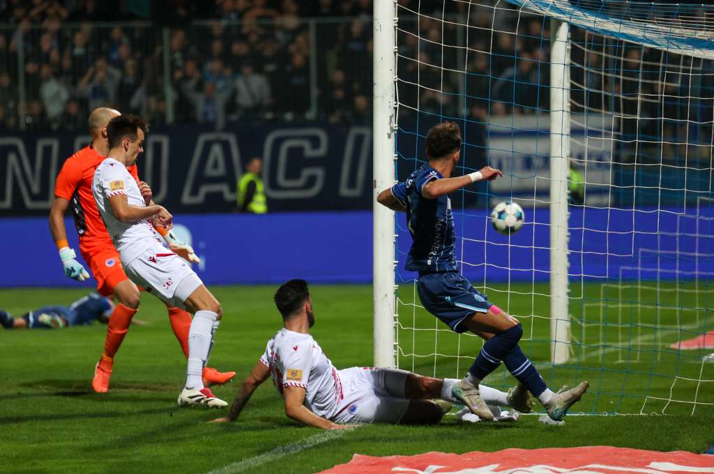 Domaći su i u 10. minuti zatresli mrežu gostiju, ali je pogodak Cvetanoskog poništen nakon VAR provjere, zbog igranja rukom Lagumdžija u začetku akcije.