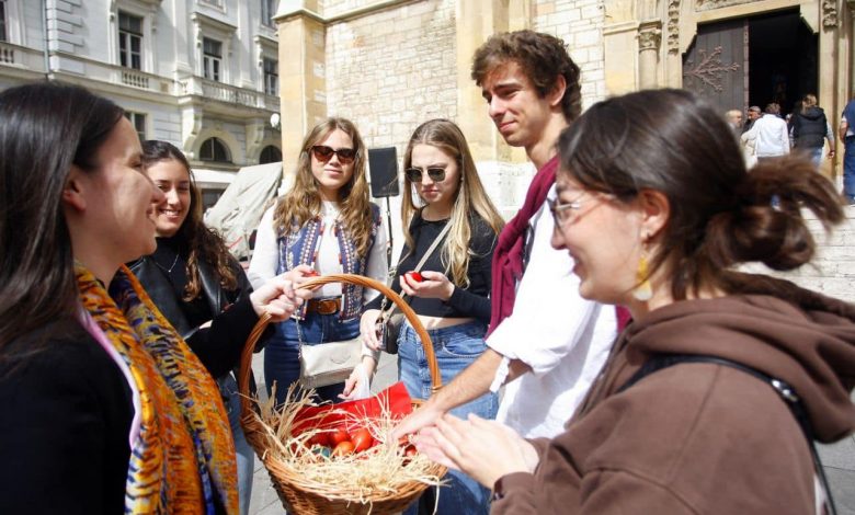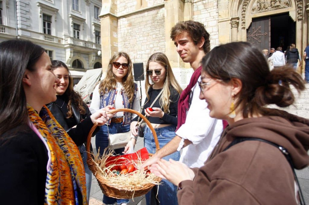 Gradonačelnica Sarajeva Benjamina Karić danas je povodom Uskrsa ispred katedrale Srca Isusova dijelila uskršna jaja prolaznicima i vjernicima katoličke vjeroispovjesti.