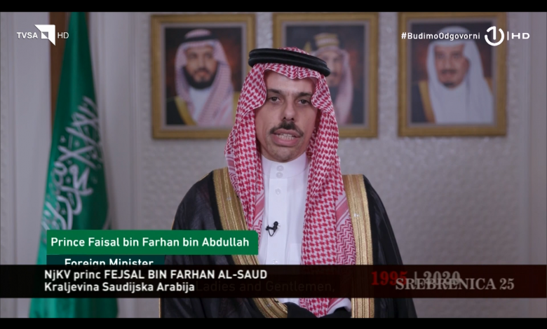 Ministar vanjskih poslova Kraljevine Saudijske Arabije princ Faisal bin Farhan Al-Saud u svom obraćanju povodom obilježavanja 25. godišnjice genocida u Srebrenici naglasio je da Kraljevina potvrđuje podršku porodicama žrtava genocida koji je odnio hiljade života.