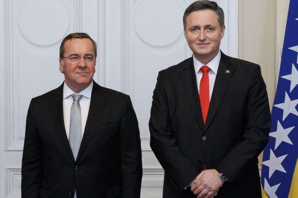 Članovi Predsjedništva BiH razgovarali su s ministrom odbrane Savezne Republike Njemačke Borisom Pistoriusom o sigurnosnoj situaciji u Bosni i Hercegovini i Zapadnom Balkanu. Potcrtana je važna uloga SR Njemačke, kao jednog od ključnih partnera Bosne i Hercegovine u procesu evropskih i euroatlantskih integracija, saopćeno je iz Kabineta člana Predsjedništva BiH Denisa Bećirovića.