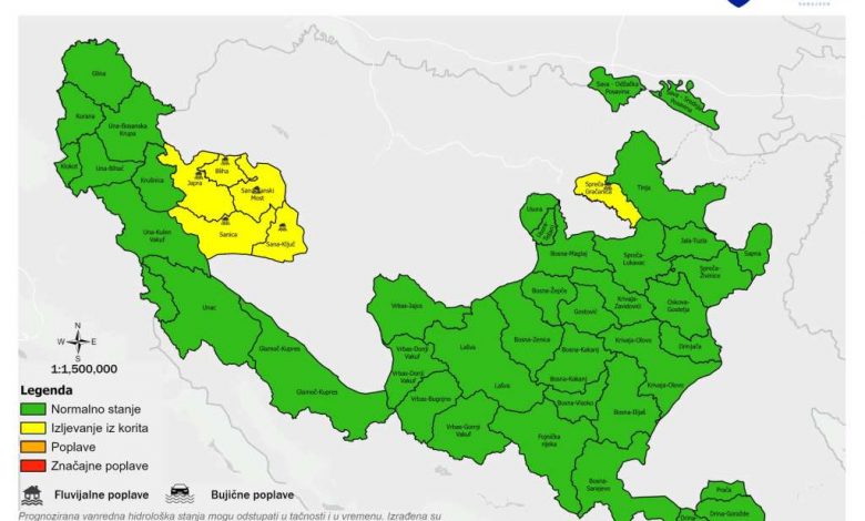 Obavještenje o prognozi vanrednog hidrološkog stanja odnosi se na područje Unsko-sanskog i Tuzlanskog kantona, odnosno Sanskog Mosta, Ključa i Gračanice.