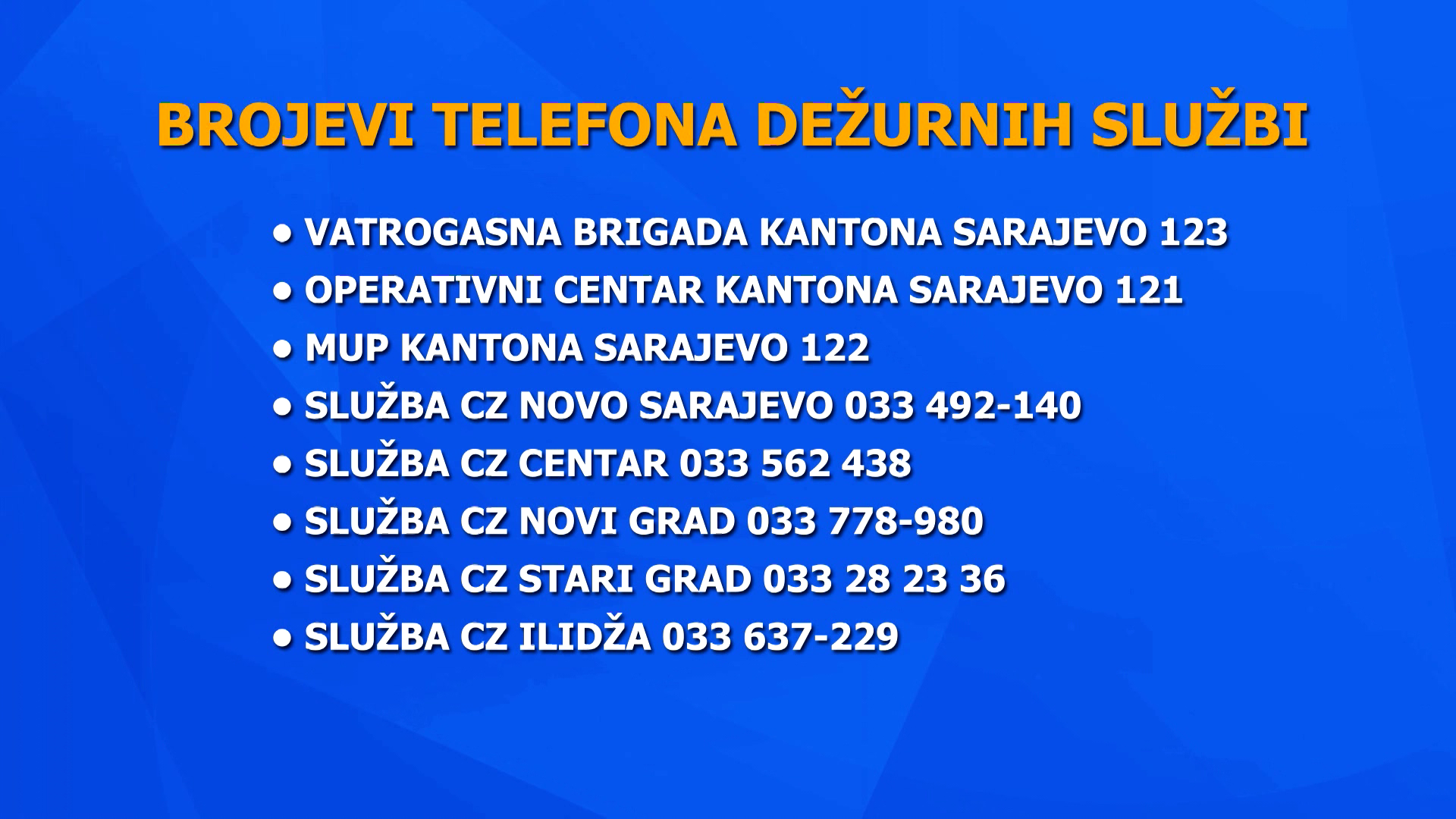 Zbog vremenskih nepogoda angažovane su sve ekipe MUP-a, Vatrogasne brigade i Civilne zaštite KS. Kako je saopćeno, građani mogu pozvati dežurne brojeve telefona u slučaju da se nalaze ili primjete nekog ko je u situaciji u kojoj je potrebna pomoć.