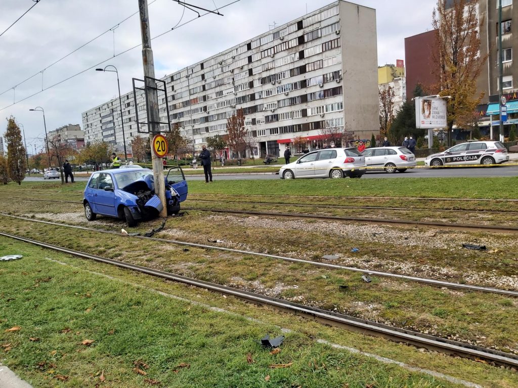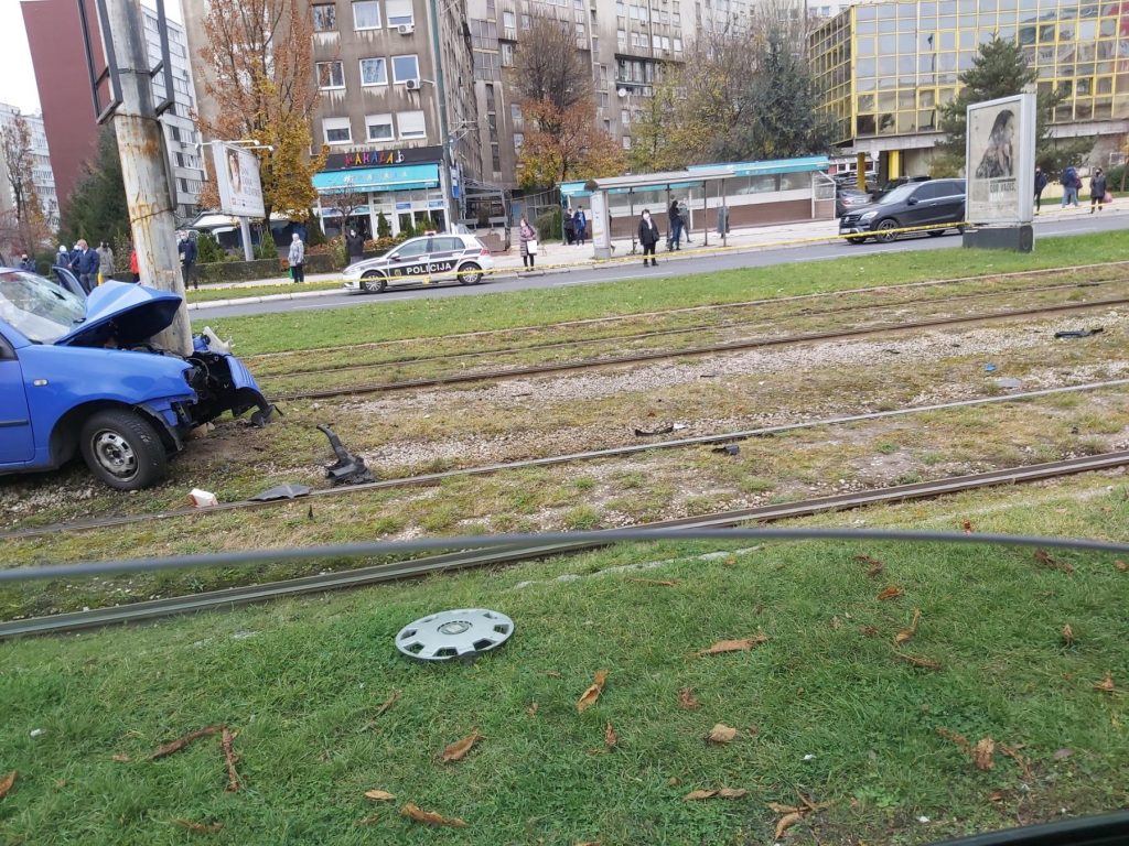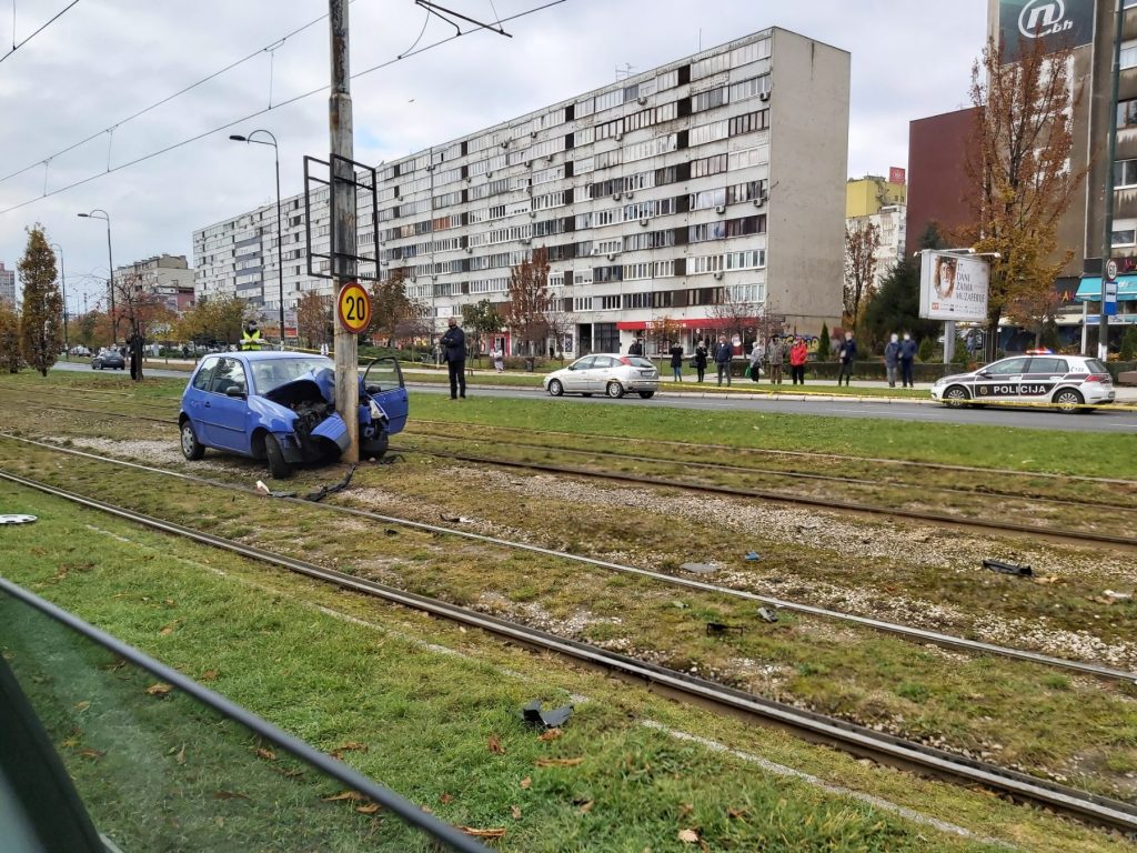 Na jednom vozilu pričinjena materijalna šteta nakon što je završilo na šinama i zabilo se u stub.