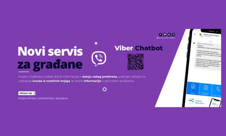 U cilju omogućavanja bržeg i efikasnijeg pružanja usluga i povećanja zadovoljstva korisnika Općina Centar je danas u rad pustila novu Viber ChatBot aplikaciju koja predstavlja još jedan iskorak u digitalizaciji usluga Općine Centar kao i uvođenju servisa E-matičar za sve građane Općine. Putem aplikacije građani mogu podnijeti zahtjev za izdavanje izvoda i uvjerenja iz matičnih knjiga i njihovo preuzimanje, dobiti informacije o stanju predmeta koji se vodi u Općini, te informacije o općinskim službama. Budući da se radi o pilot projektu građani će naručene izvode iz matičnih knjiga moći preuzeti na tri lokacije: u Zgradi Općine, i u Mjesnim zajednicama “Skenderija-Podtekija” i “Koševsko brdo”. Plaćanje administrativne takse vršit će se na licu mjesta.