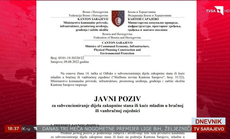 Ovaj javni poziv u vezi je sa subvencioniranjem dijela zakupnine stana ili kuće mladima u bračnoj ili vanbračnoj zajednici. Oni koji budu ispunili uslove, dobiće po 200 maraka mjesečno za period od 6 mjeseci.