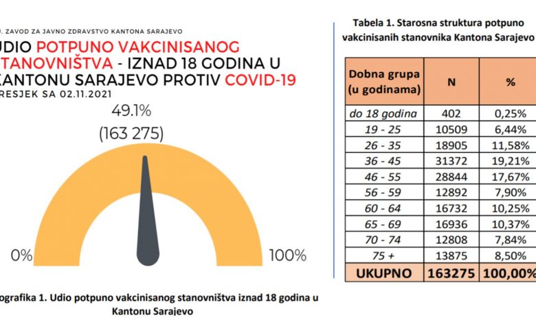 Prema Biltenu vakcinacije Zavoda za javno zdravstvo Kantona Sarajevo, do danas je u potpunosti vakcinisano ukupno 163.275 stanovnika našeg kantona, što predstavlja 49,1 posto punoljetnih građana.