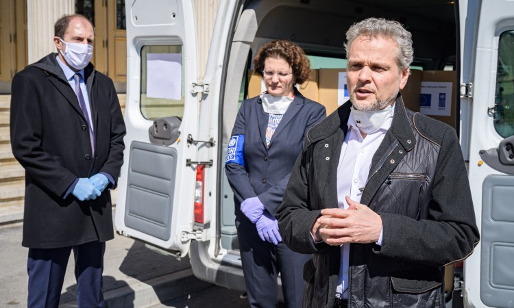 Šef Delegacije Evropske unije i specijalni predstavnik EU u Bosni i Hercegovini ambasador Johann Sattler i rezidentna predstavnica UNDP-a u BiH Steliana Nedera uručili su danas 2.000 medicinskih štitnika za lice, vizira, Zavodu za javno zdravstvo Kantona Sarajevo.