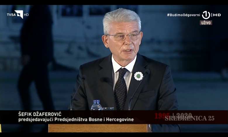 Džaferović je istakao da tu, 25. godišnjicu genocida nad Bošnjacima “Zaštićene zone UN-a Srebrenica” dočekuje u posebnim okolnostima izazvanim pandemijom korona virusa te dodao da ga to nije spriječilo da ovdje, u Bosni i Hercegovini, ali i diljem svijeta na dostojanstven način obilježe tu najtužniju godišnjicu u historiji našeg naroda.