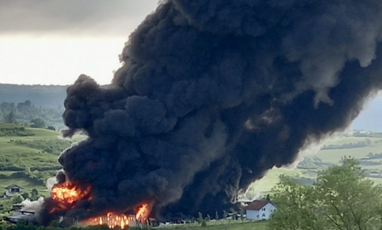 FOTO/TVSA: Veliki požar u Bihaću: Gori fabrika za proizvodnju stiropora