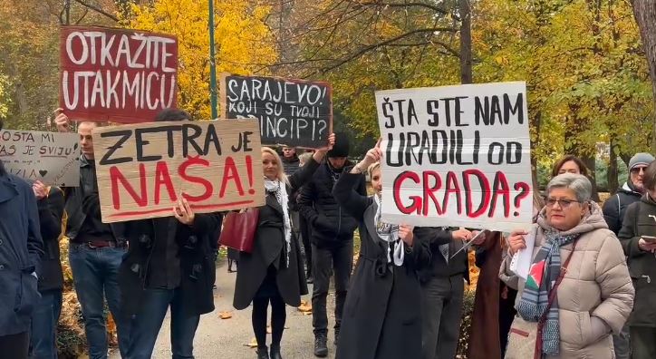 “Šta ste nam uradili od grada”, “Otkažite utakmicu”, “Zetra je naša” glasili su tek neki od transparenata koji su građani nosili ispred zgrade Vlade Kantona Sarajevo.