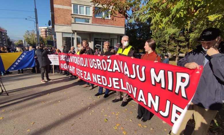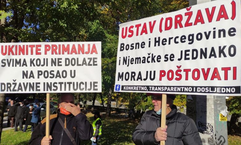 Organizatori protesta Sejda Čavćić i Suad Đozić su kazali da traže od viskog predstavnika u BiH Christiana Schmidta da reagira i zaštiti ustavno-pravni poredak BiH.